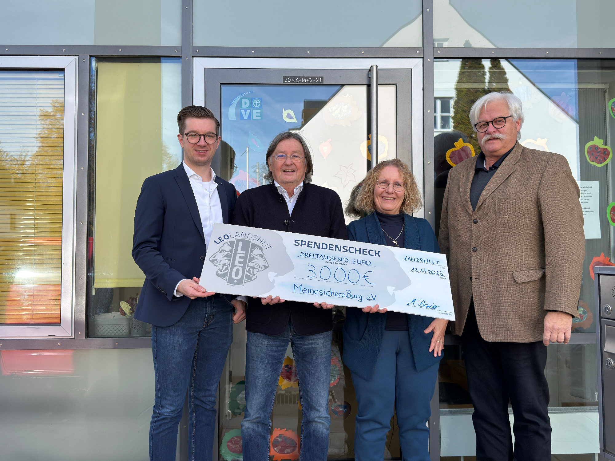 3000 Euro konnten LEO Landshut, die Jugendorganisation des Lions Club, dem Verein MeinesichereBurg e.V. überreichen. Mit diesem Geld wird der Aufbau des Traumazentrums für psychisch traumatisierte Kinder und Jugendliche unterstützt, das im Februar nächsten Jahres seine Arbeit aufnehmen wird. Erzielt wurde dieser hohe Betrag u.a. durch Aktionen wie die Car Wash-Aktion und die Krapfen-Aktion, bei der Firmen am 1. Freitag nach Faschingsbeginn mit Krapfen beliefert wurden. Der Vorstand des Vereins nahm die Spende, die von Maximilian Baier überreicht wurde, dankbar und freudig entgegen.